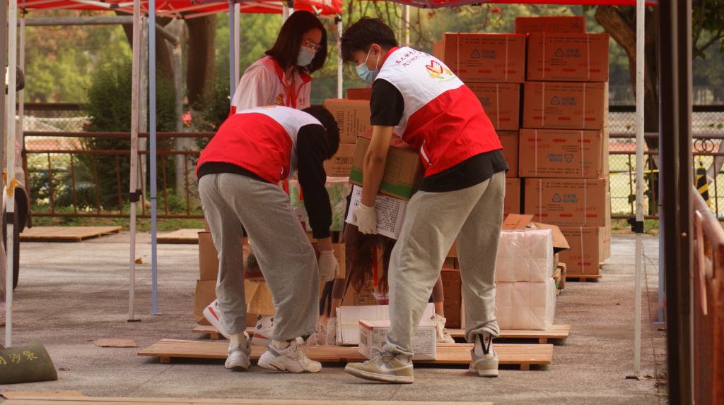 志愿者正在进行物资搬运