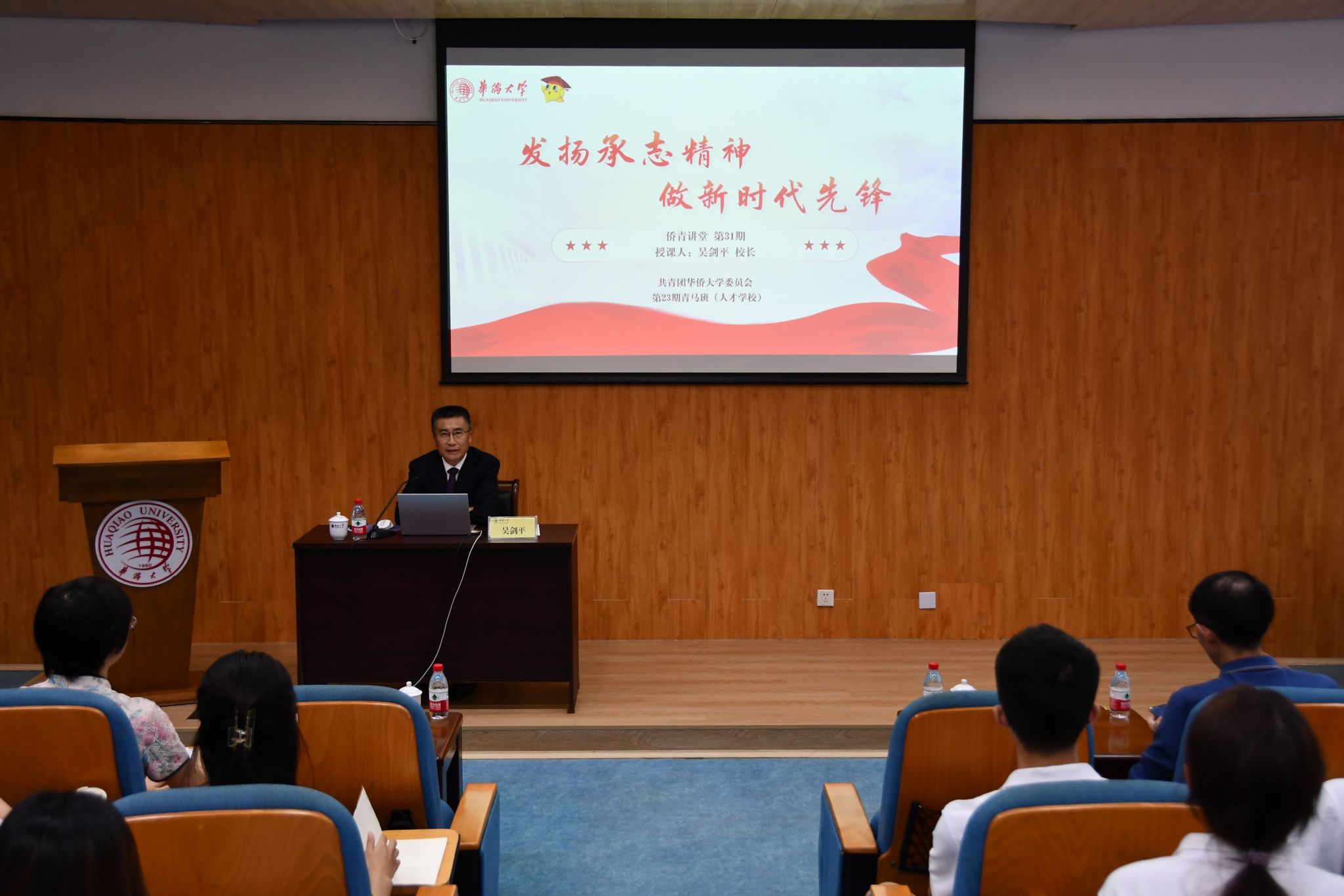 11月5日下午,华侨大学青马学员主题课程暨侨青讲堂第31讲在厦门校区王源兴国际会议中心G103室举行。校长吴剑平以“发扬承志精神 做新时代先锋”为主题,为第23期青马班学员作专题讲座。