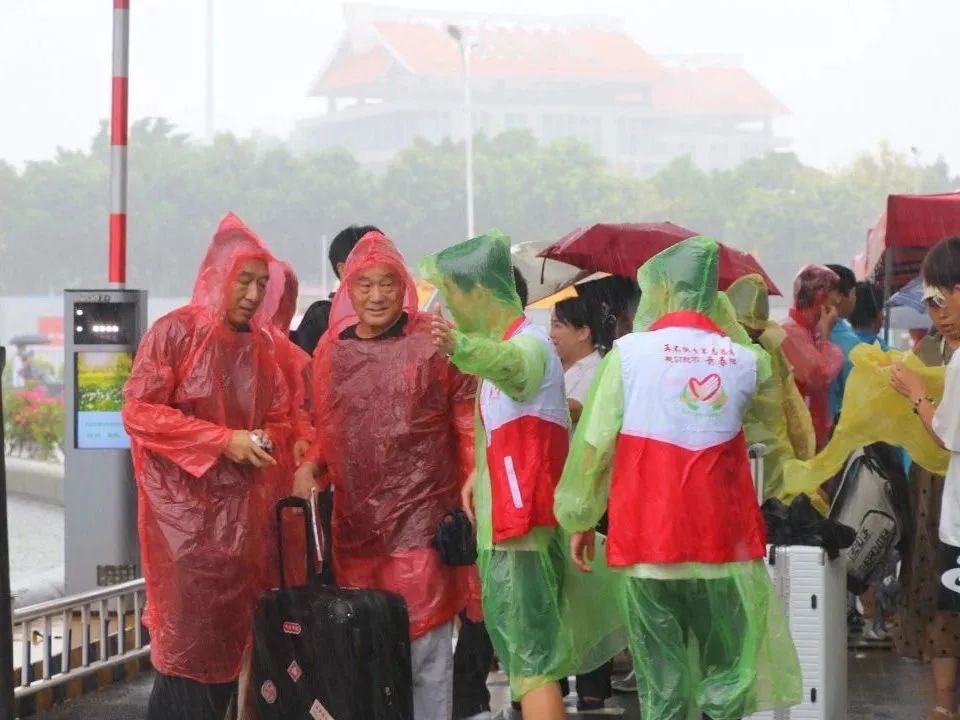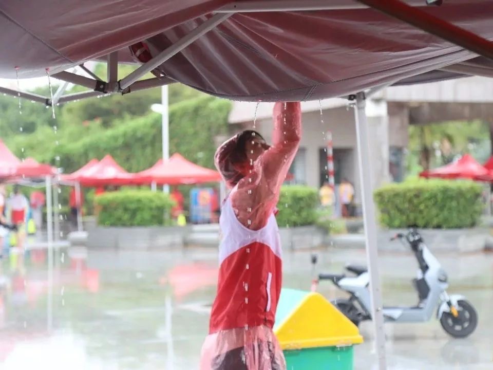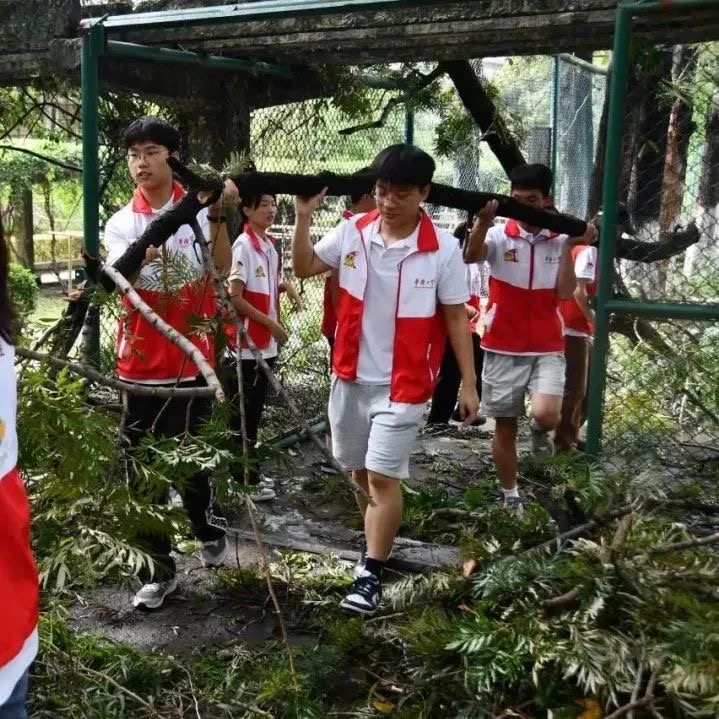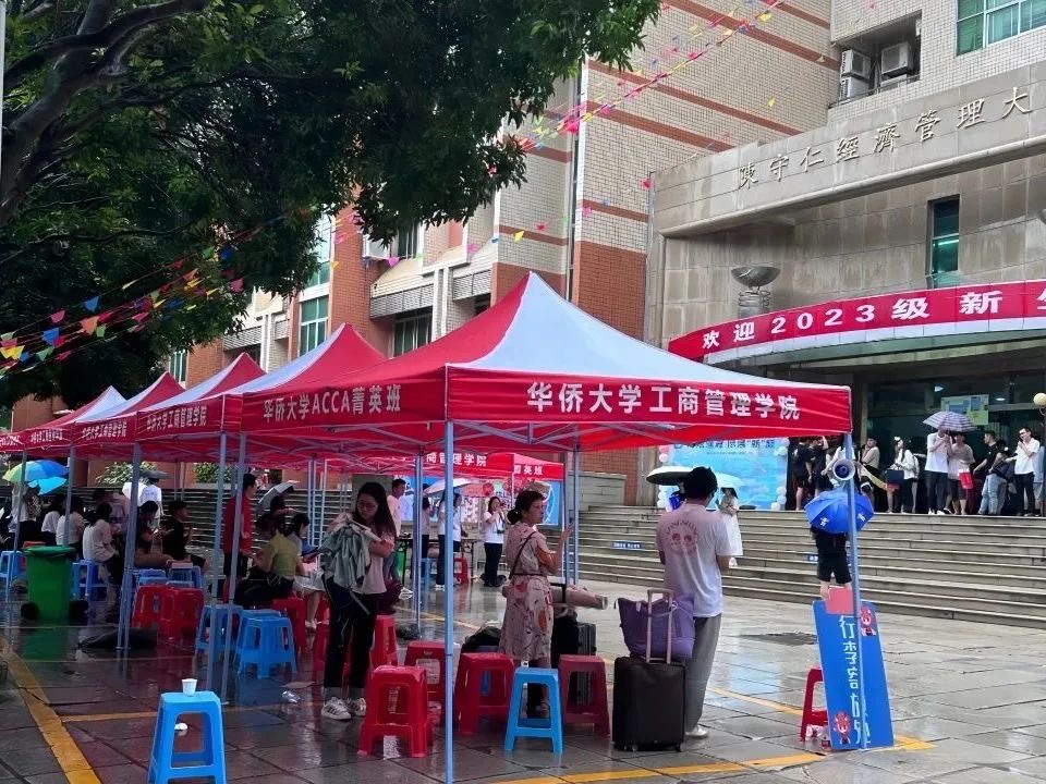 2023年8月,开学之际来临的同时,台风也在袭击着华园。但狂风暴雨并没有抹去新鲜血液的涌入以及志愿者们迎新的热情。雨中,是百余名辛苦的志愿者们,他们有的手提行李,有的为新生们指引方向。披在身上的红色马甲,是华园最亮丽的风景线。