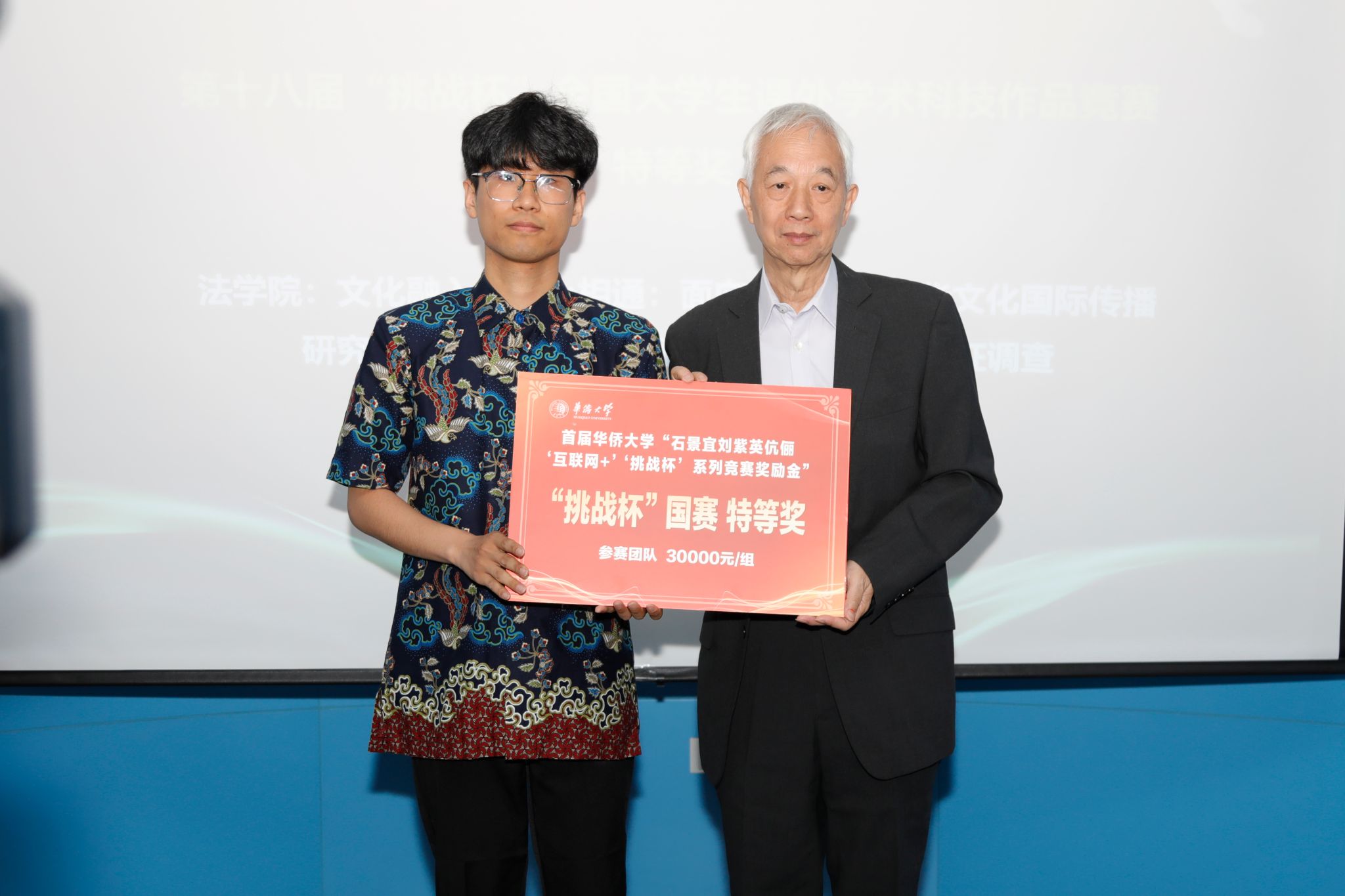 石汉基为“挑战杯”国赛特等奖项目团队颁奖