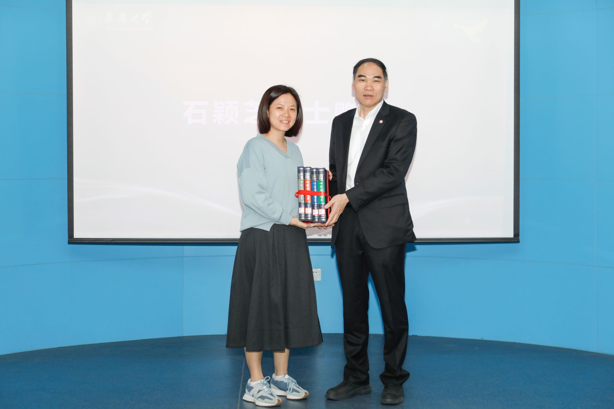 石汉基家族代表石颖芝女士在致辞中回忆了三次到访华大的经历,对学校取得的发展进步表示祝贺,并表示将继续与父亲石汉基先生一起,承继祖父石景宜先生的“书使精神”,致力于推广中华文化艺术。