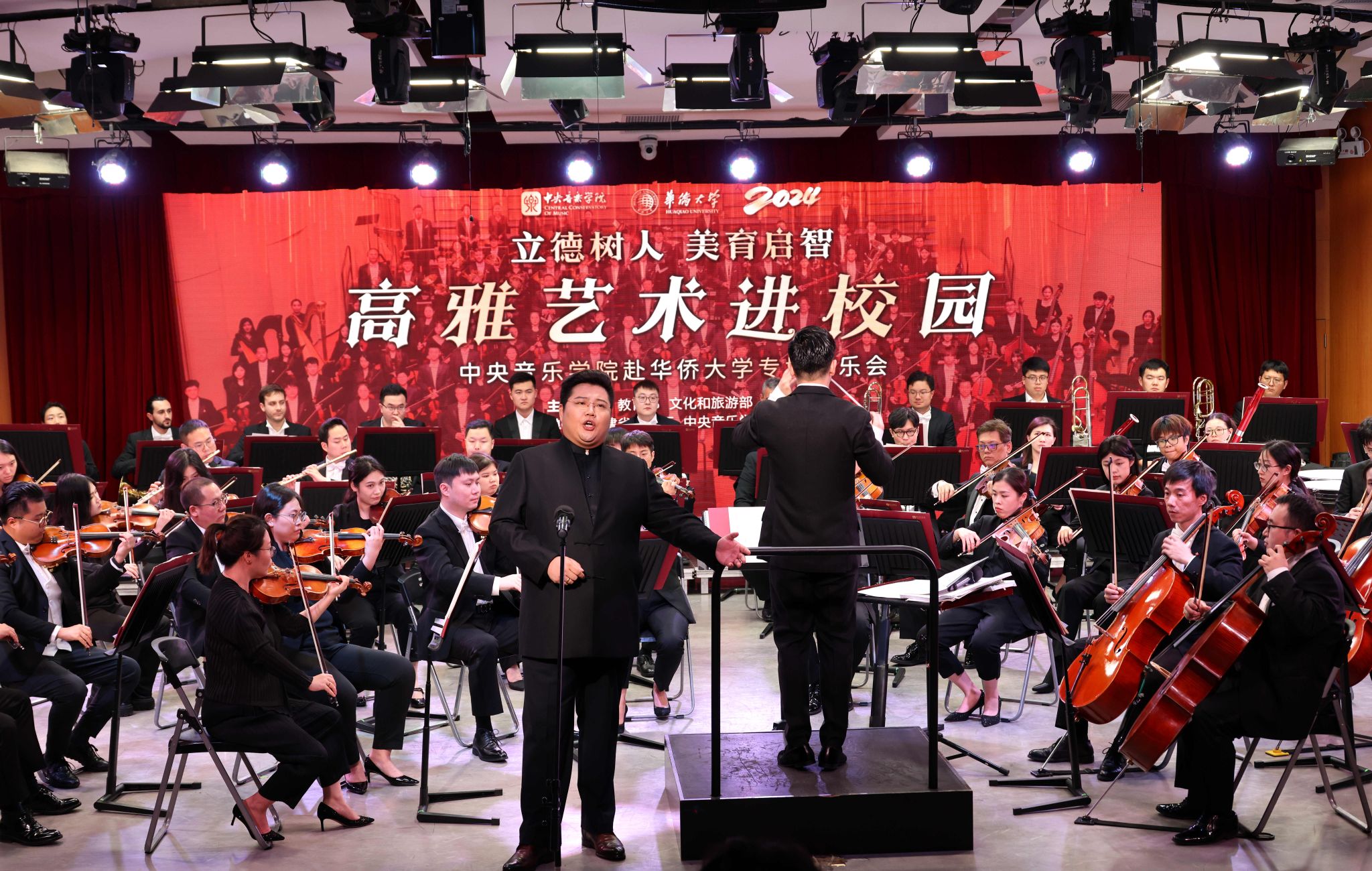管弦齐鸣震天响,交响乐章映辉煌。10月31日晚,“2024年高雅艺术进校园——中央音乐学院赴华侨大学专场音乐会”在李碧葱音乐大楼演播厅上演,为海内外师生带来一场精彩纷呈的听觉盛宴。
