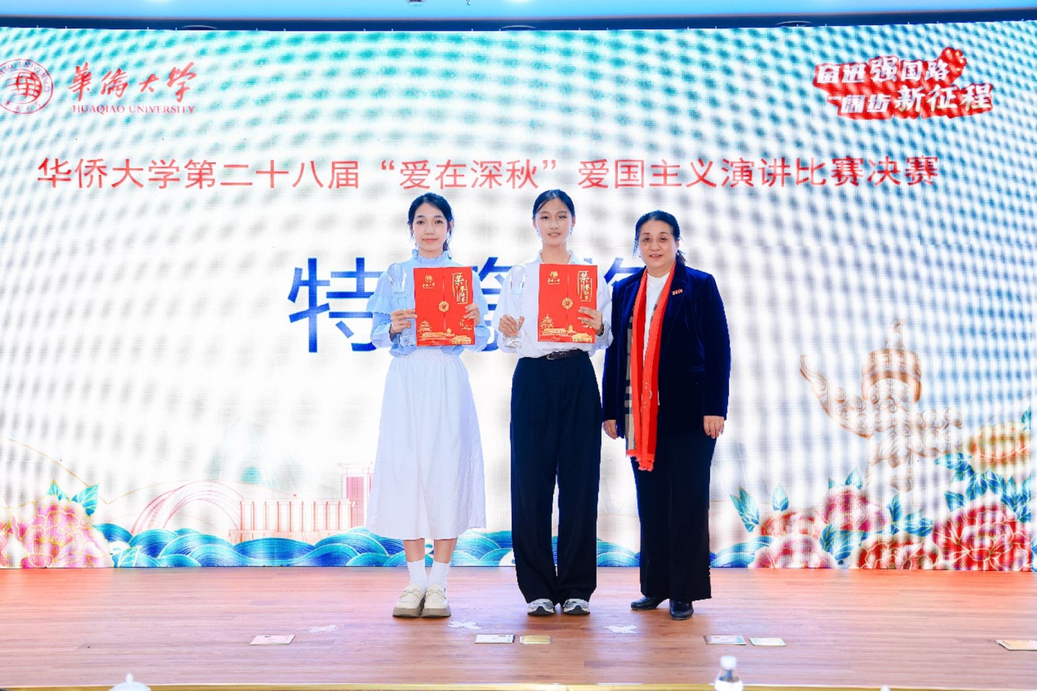 以“奋进强国路,阔步新征程”为主题的华侨大学第二十八届“爱在深秋”爱国主义演讲比赛决赛,近日在厦门校区王源兴会议中心举行。