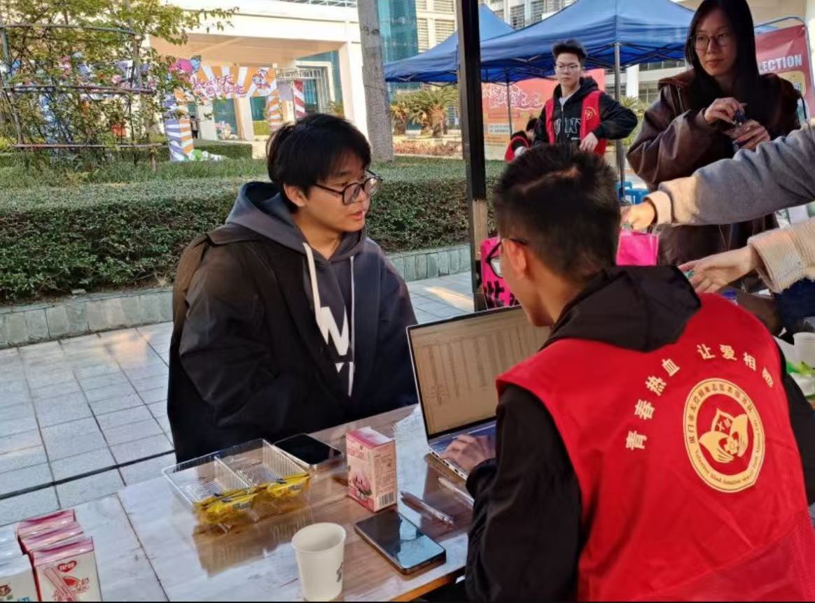 华侨大学爱心献血协会于四端文物馆的架空层区域精心策划了一场无偿献血公益活动,旨在激励大学生践行人道主义精神,发扬博爱与无私奉献的志愿者风范。