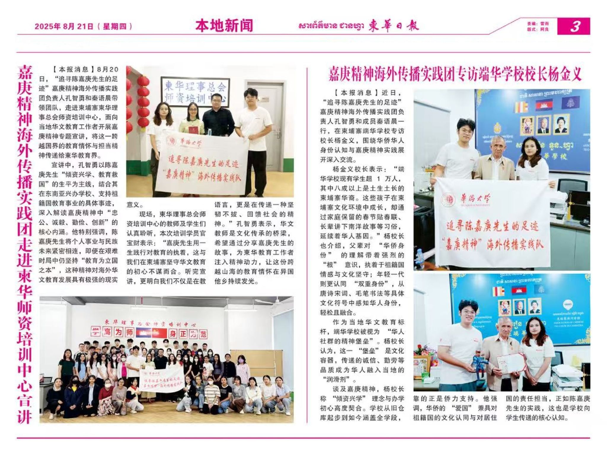 “嘉庚精神海外传播”实践团主要事迹在《柬华日报》报道