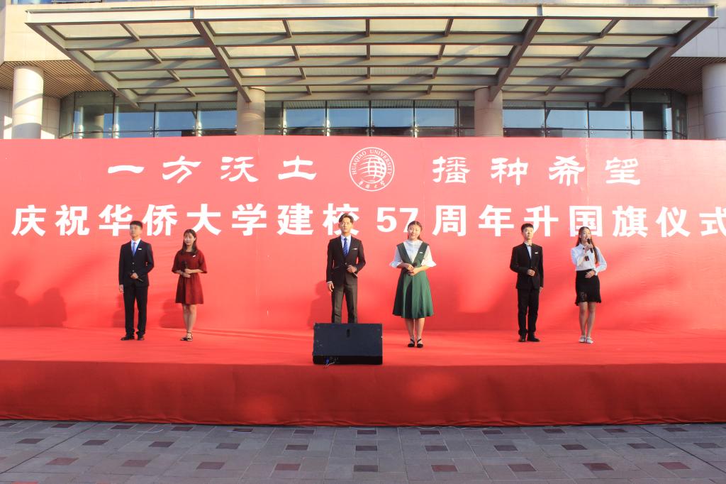 2017年11月1日,华侨大学迎来建校57周年纪念日。上午,我校在泉州校区廖承志广场、厦门校区行政研发大楼前举行庆祝建校57周年的升国旗仪式。校领导徐西鹏、吴季怀、刘塨、刘斌、彭霈、毕明强,校长助理张云波,各党政机关、学院主要负责人、辅导员以及2017级全体新同学参加升国旗仪式。